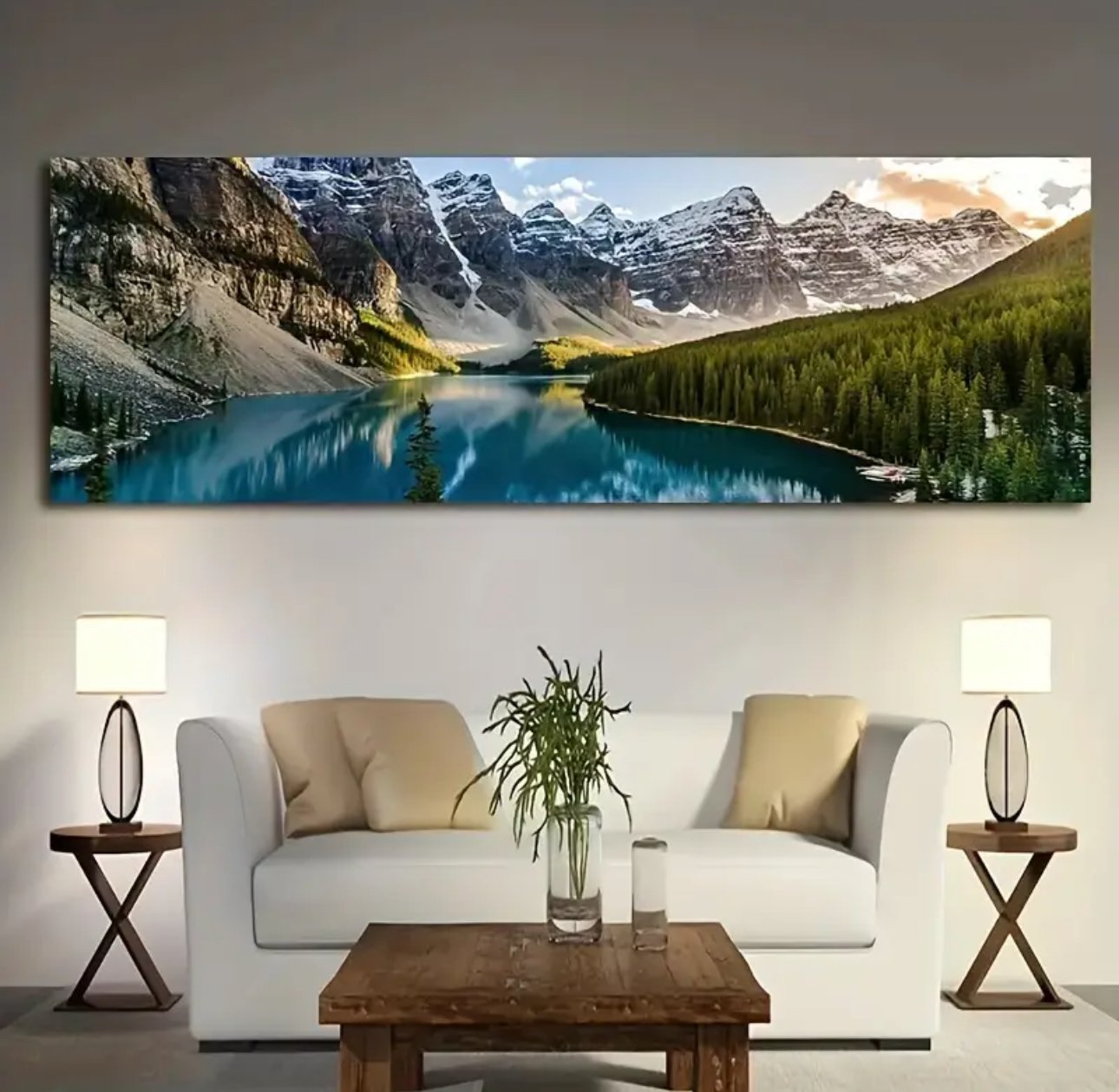 1pc Canvas Painting, Lake Forest Mountain Scenery Painting, Wall Art Decor, For Living Room, Bedroom, No Frame,