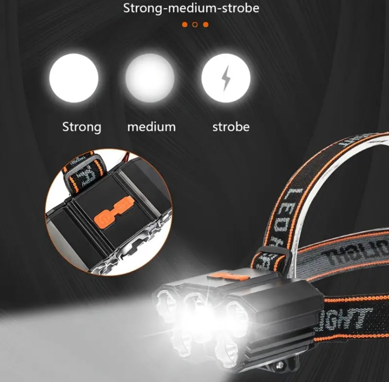 1pc Super Brightest Powerful 5 LED Headlamp Rechargeable