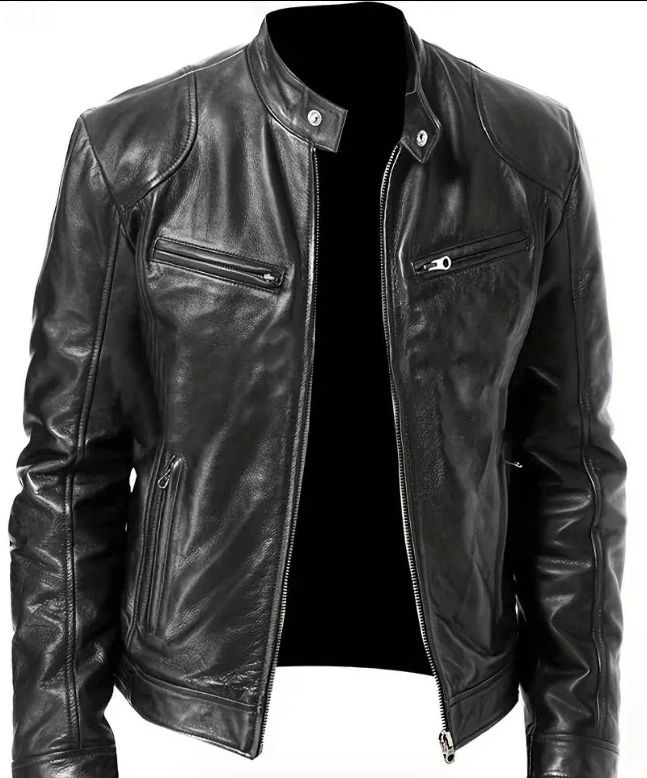 Chic PU Leather Jacket, Men’s Casual Solid Color Zip Up Thin Jacket For Spring Fall