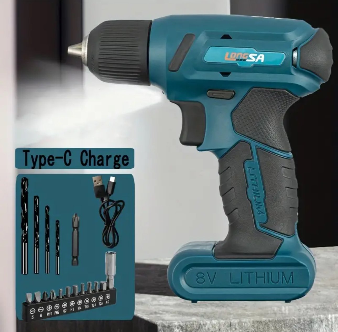 1 Set 8V Cordless Electrical Drill, Rechargeable Power Drill / Driver, Li-lon Battery, LED Working Light Function, Drill Bits Accessories, Electrical Drill Kit, Power Tools