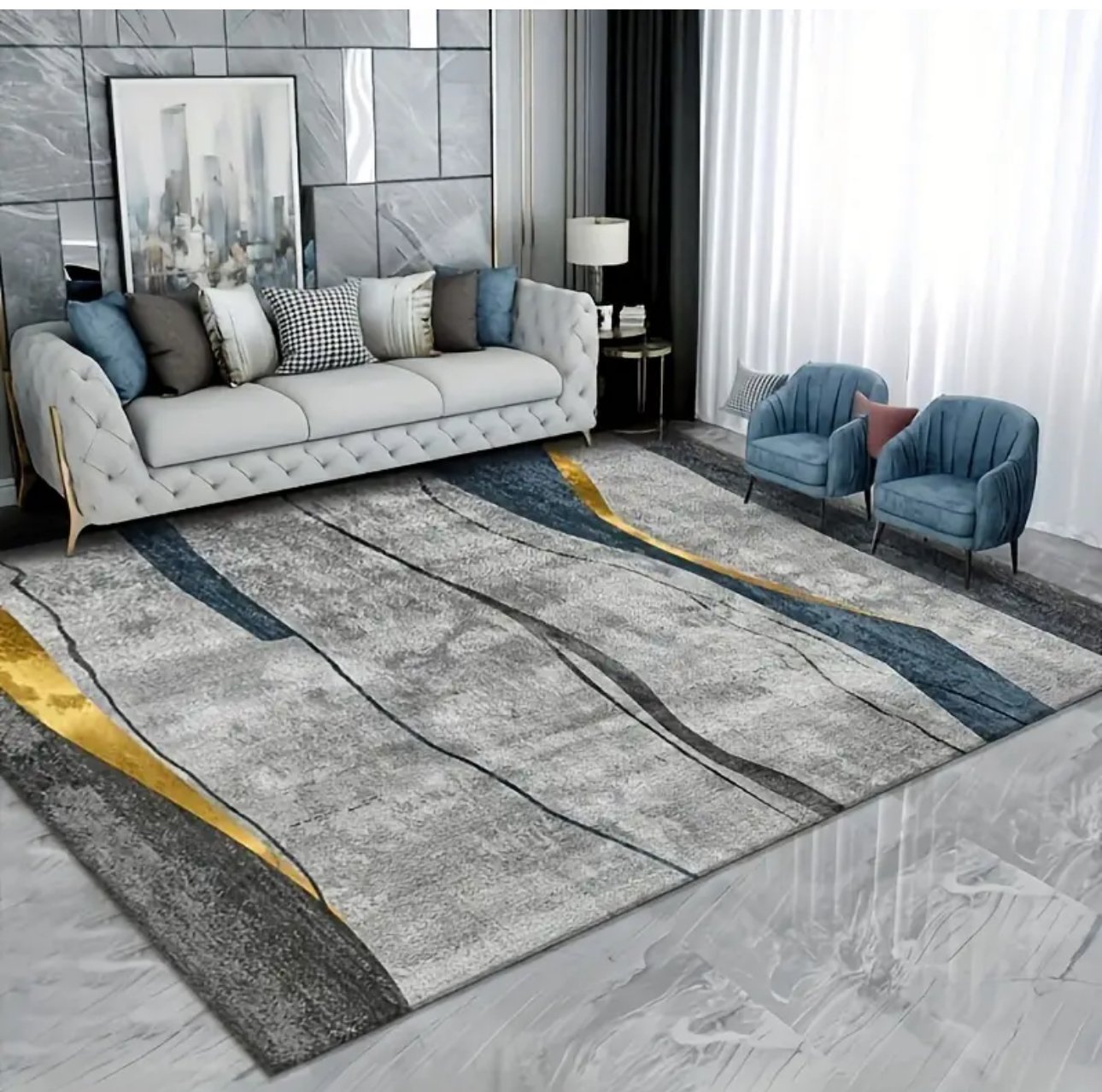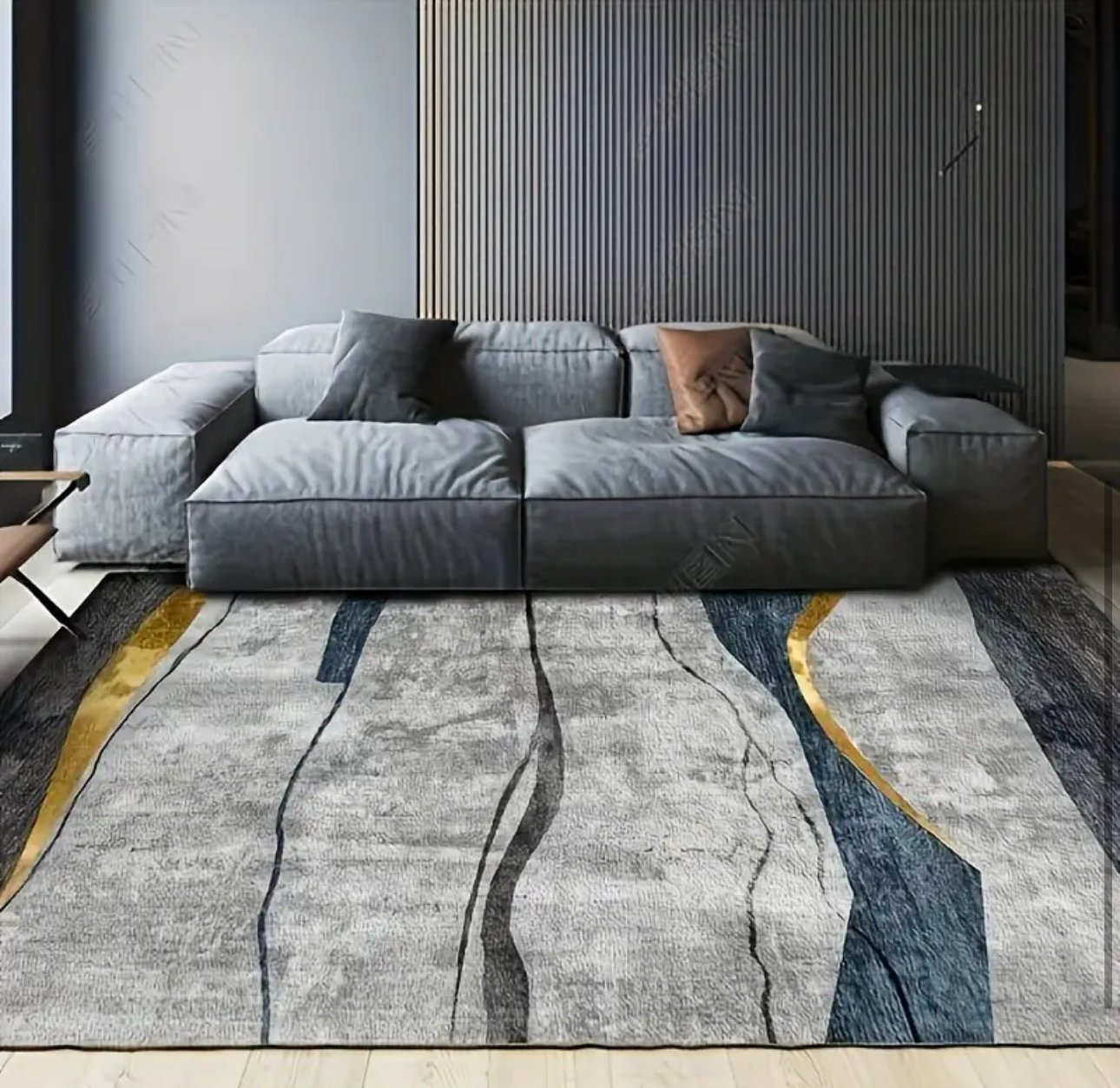 1pc Light Luxury Grey Striped Print Rug, Geometric Pattern Carpet, Faux Cashmere Rug With Anti-skid Point Plastic Bottom, Suitable For Kitchen Supplies Interior Decor Dining Room Home Decor Room Accessories Indoor Decor Living Room Gift