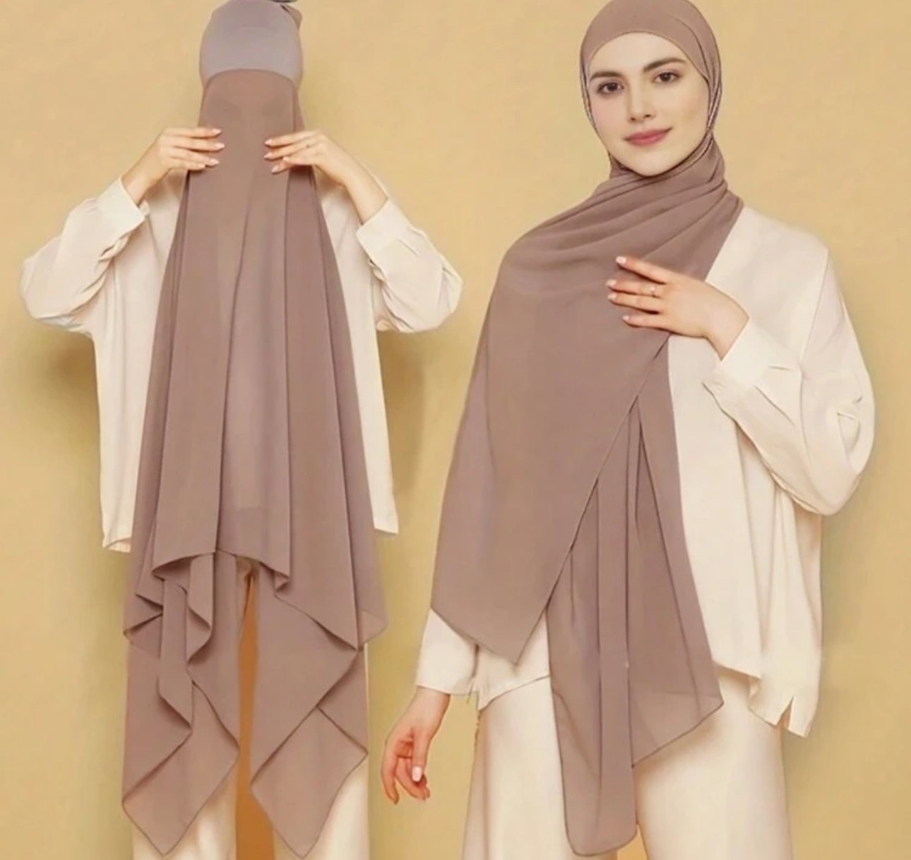 1 Piece Instant Chiffon Hijab With Undercap, Unicolored, Stretchy Pullover Headscarf For Outdoor, Thin, Breathable, Sunscreen Headscarf