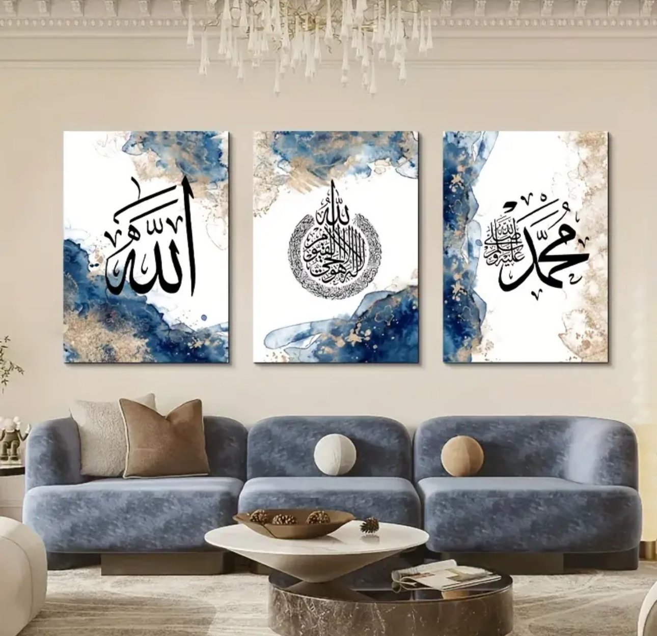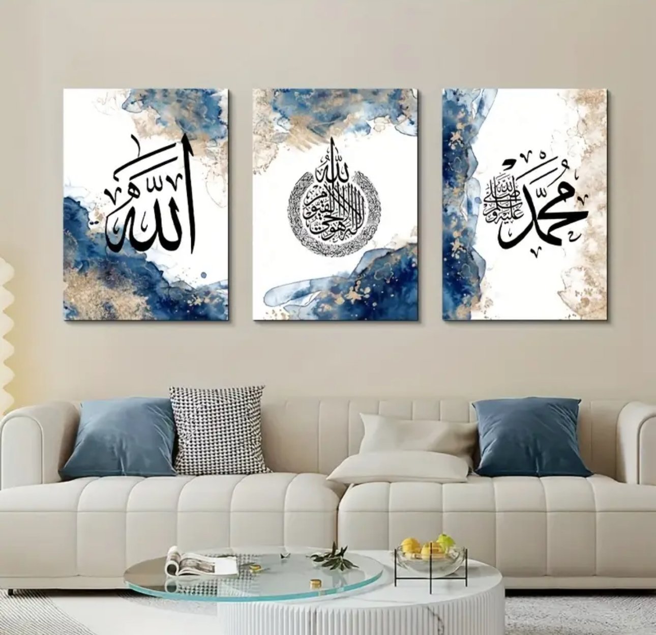 3pcs Framed, Islamic Wall Art Pictures, Arabic Calligraphy Posters And Prints, Allah Canvas Painting, Modern Living Room Home Decor, 30x40cm Ready To Hang