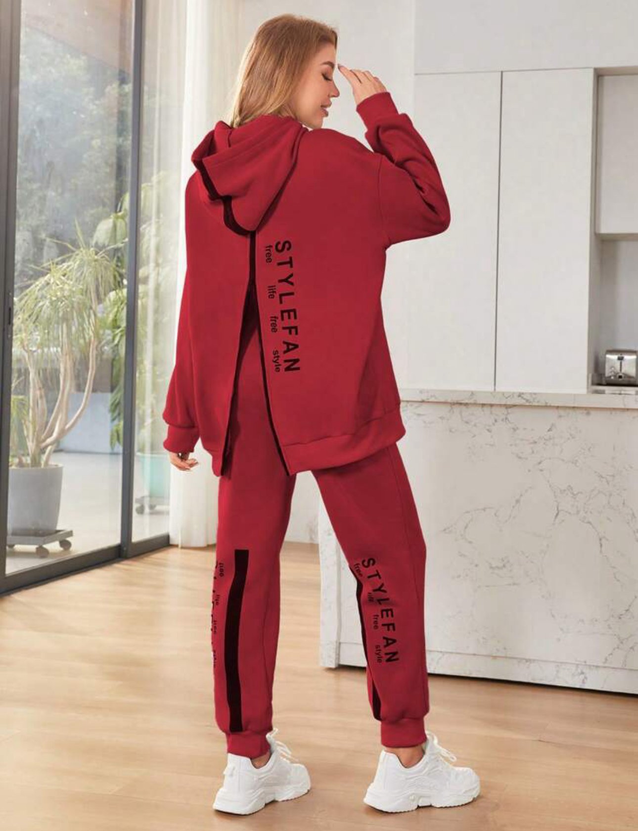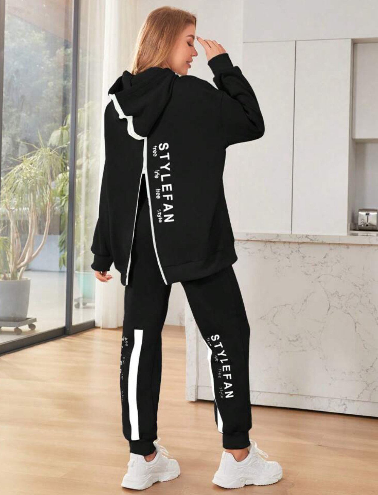 LUNE two-piece set with hoodie and sports pants with high back slit and letter pattern