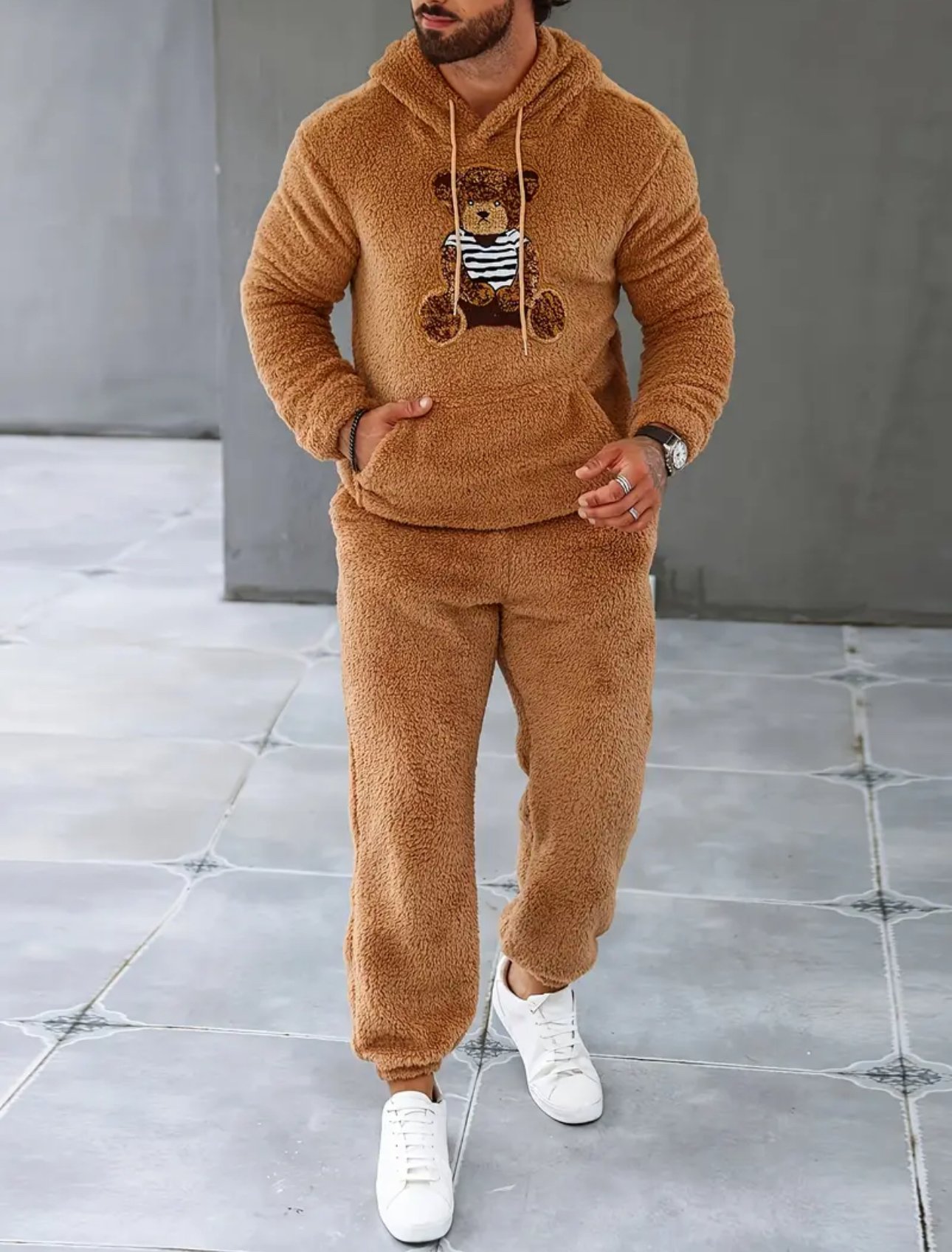 Men’s Casual Animal Bear Hoodie and Pants Set,