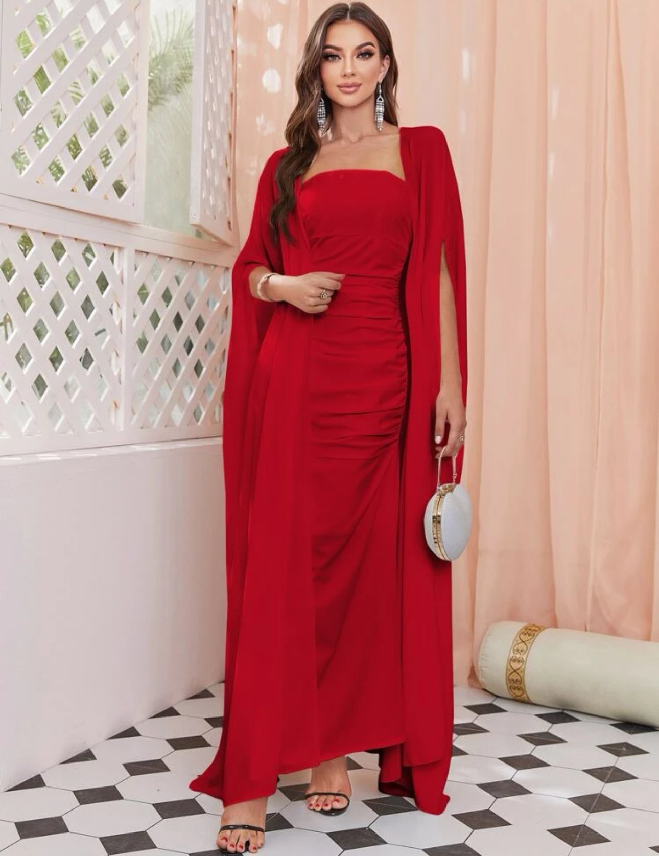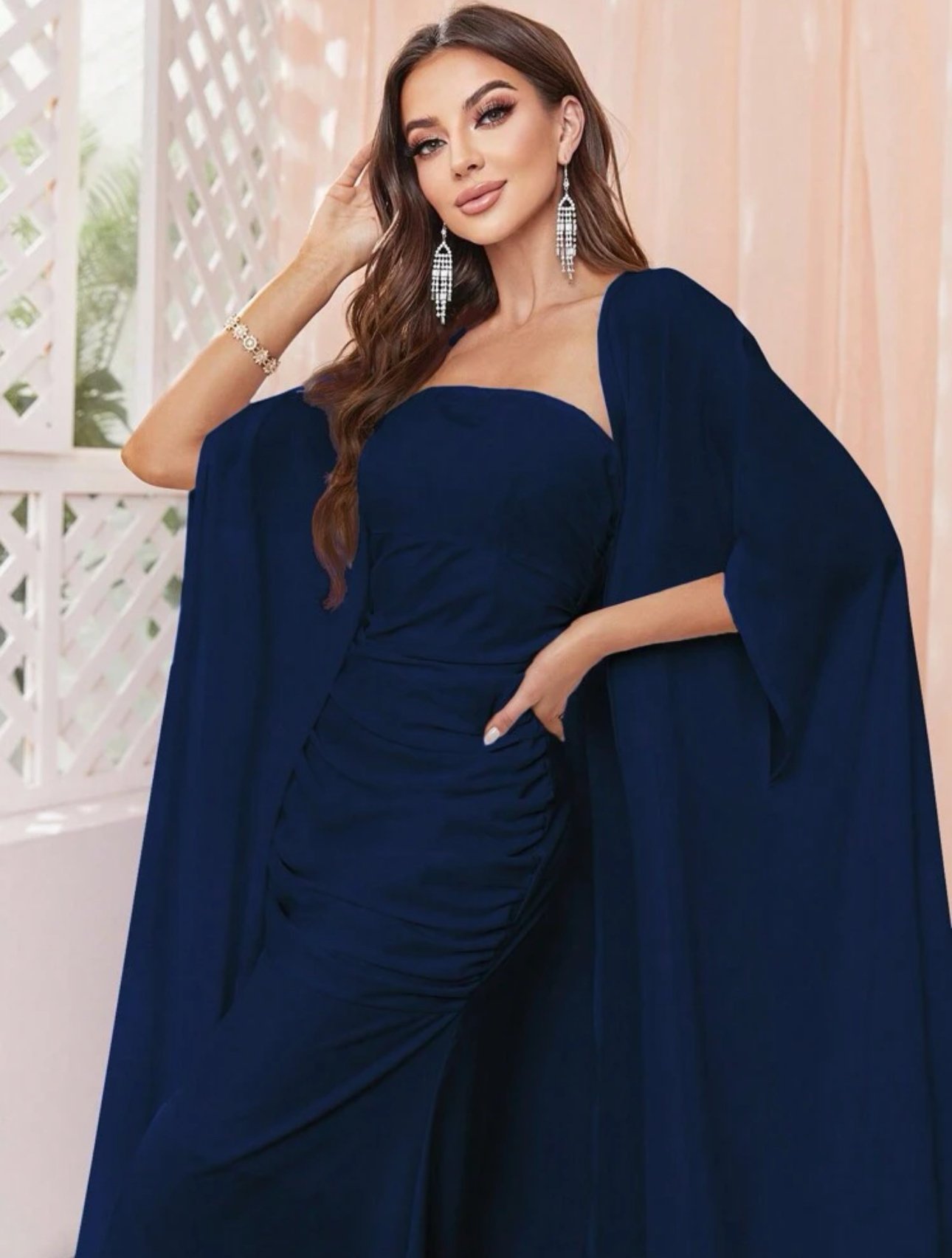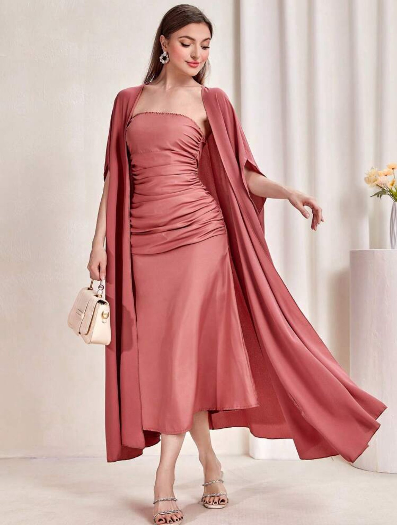 Modely Women Cape Sleeve Coat And Dress Set