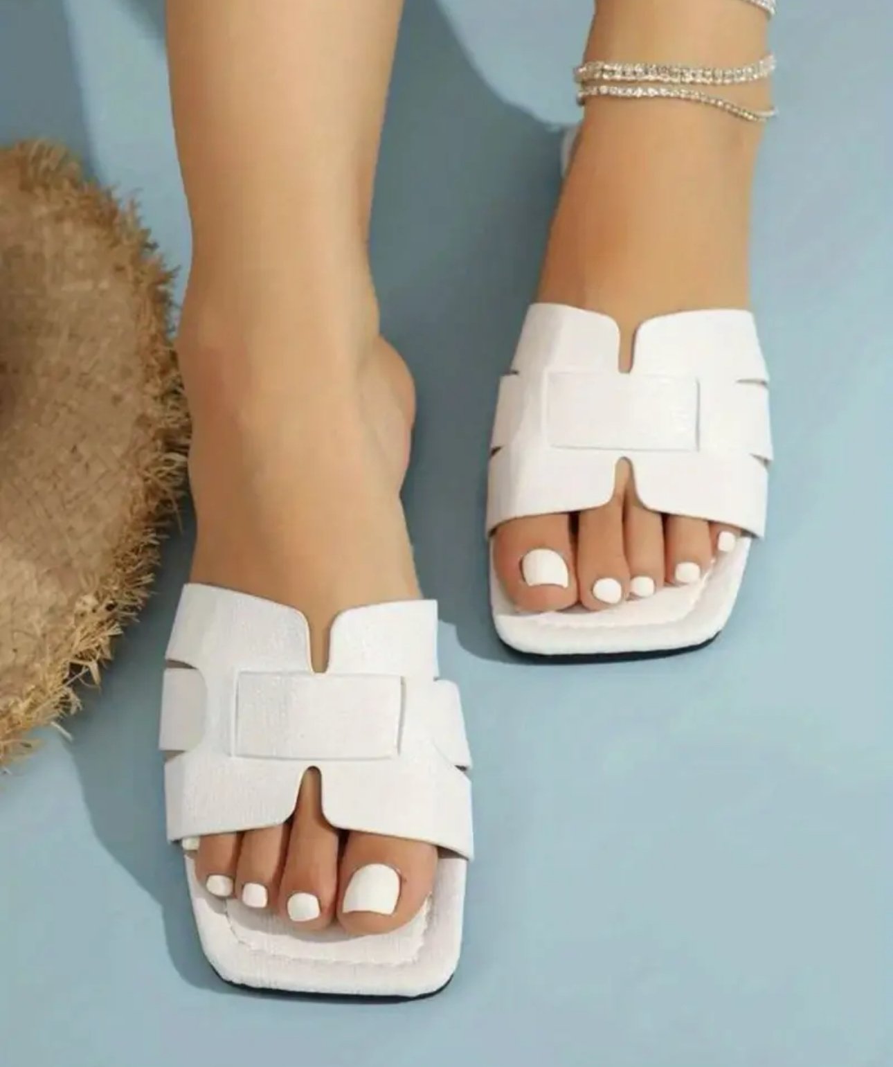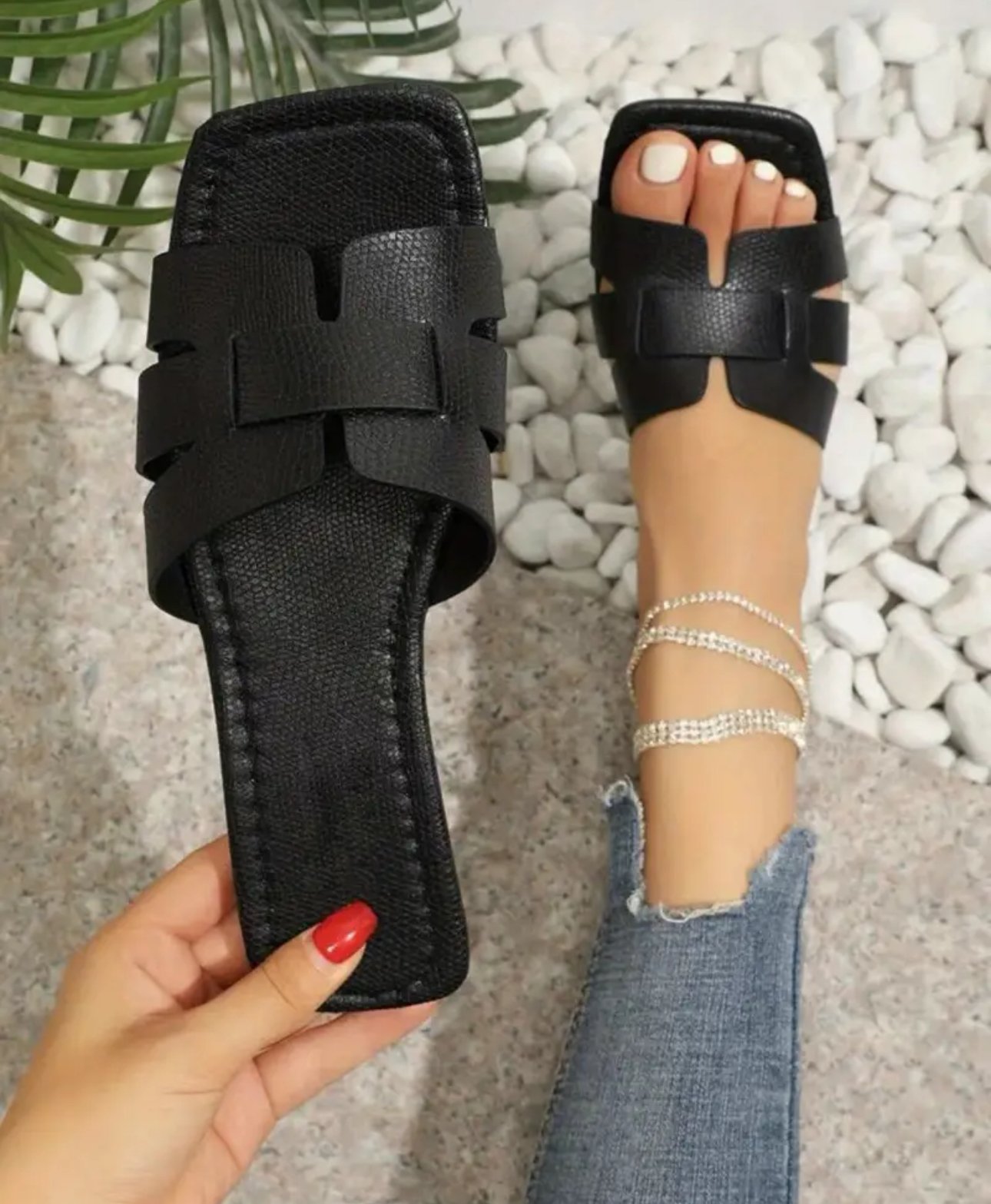 Women’s Solid Flat Slippers, Fashion Square Open Toe Non Slip Slides Shoes, Casual Indoor & Outdoor Slippers