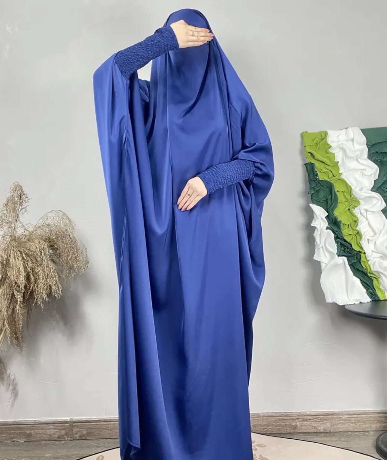 Solid Shirred Trim Abayas, Elegant Loose Long Sleeve Maxi Length Dress, Women’s Clothing
